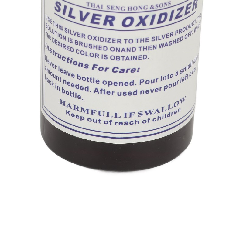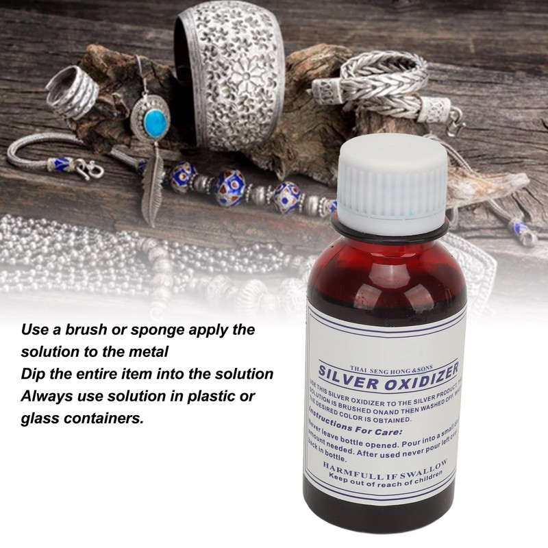 1、Vintage Style: Silver oxidation blackening agent can be used on many metal surfaces, restoring the antique style of your silver jewelry with ease 2、Effective Aging Solution: Vintage silver blackening agent creates an authentic aged look for your silver pieces, ideal for enhancing the appearance of various silver jewelry. 3、Surfaces Control: Silver oxidizer solution is water based solutions, used to antique or darken metals, you can dilute with water to have more control over the surfaces. 4、Easy to Use: Use a brush or sponge apply the solution to the metal, also dip the entire item into the solution. Always use solution in plastic or glass containers. 5、Convenient to Store: Silver darkening oxidizer liquid will never expire, always store products at room temperature in tightly closed original containers.