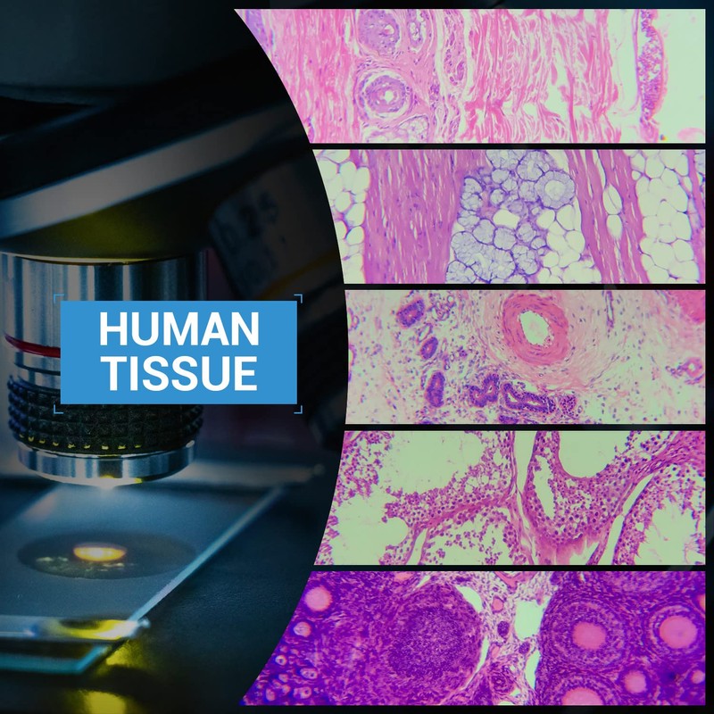 5. 100 pieces prepared microscope slides of human tissue, cells, bacteria, plants, insects and animal samples.