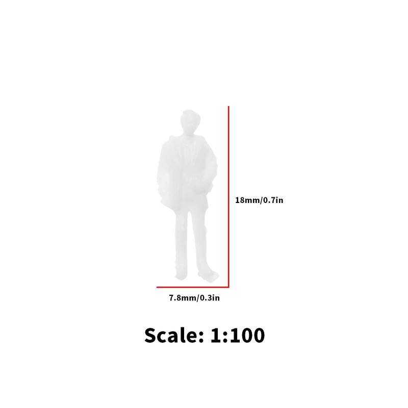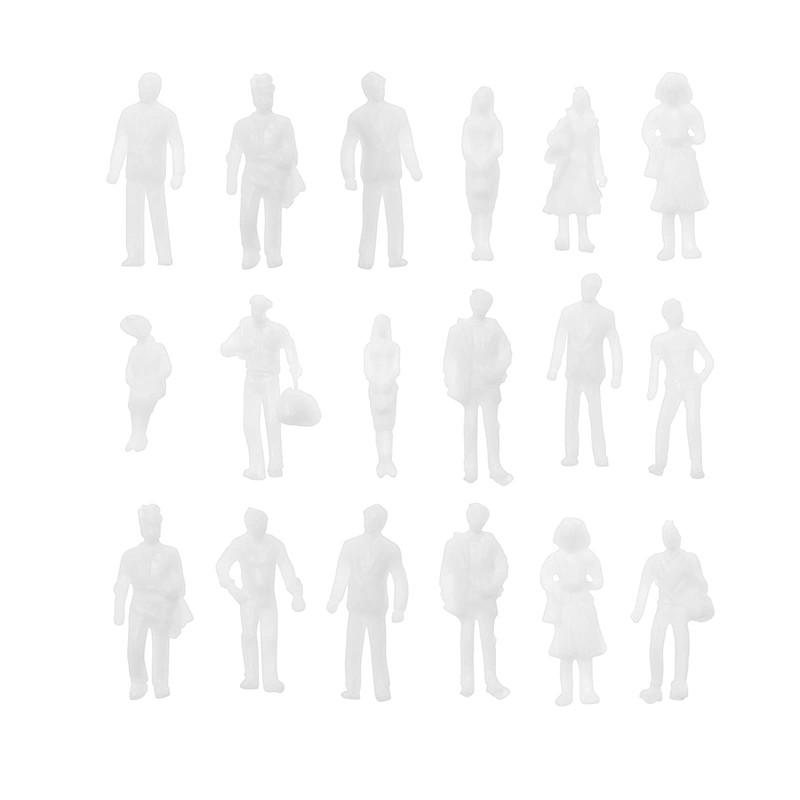 - This humanoid miniature shape was designed in 1:100 ratio with different genders and different poses such as sitting men and women, standing men and women. Exquisite workmanship such as buttons, ties, handbags and hats make these white little people more vibrant.