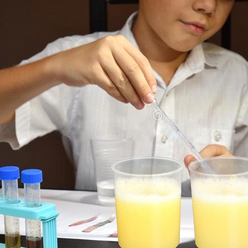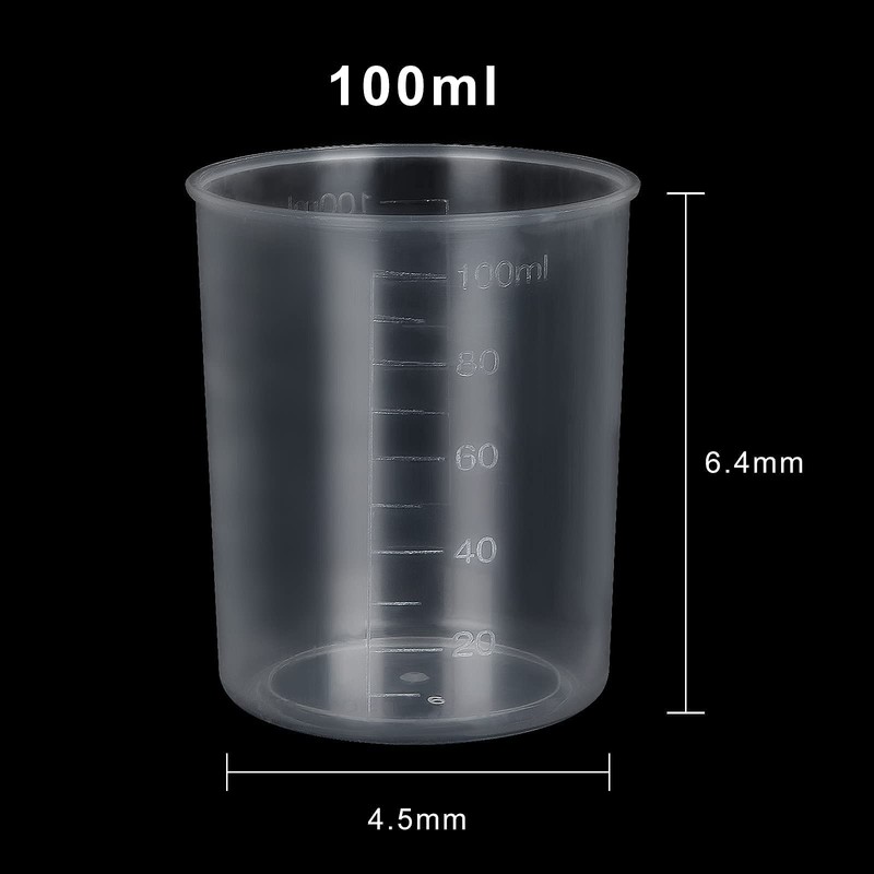 - 【Multipurpose Mixing Cups】100ml plastic beakers is suitable for measuring and mixing epoxy, resin, acrylic paint, alcohol ink, glitter, chemical liquid, ingredients, beverage, essential oil, perfume and so on, also ideal for use in professional laboratories, science classrooms and household use