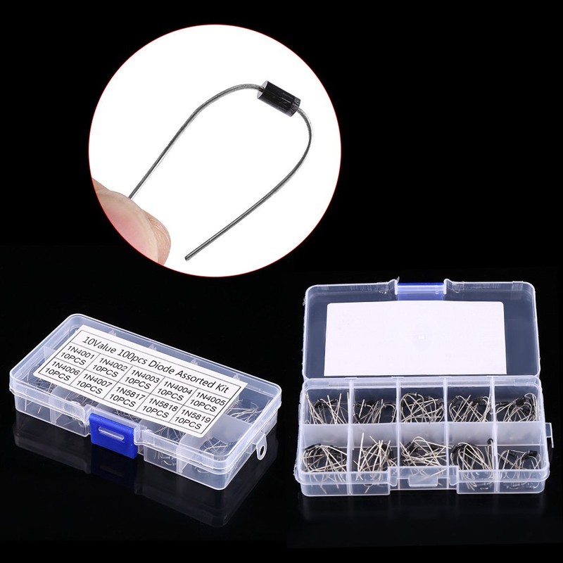 100pcs 10Values Rectifier Diode Assorted Kit with Clear Box 1N4001~1N4007, 1N5817~1N5819
