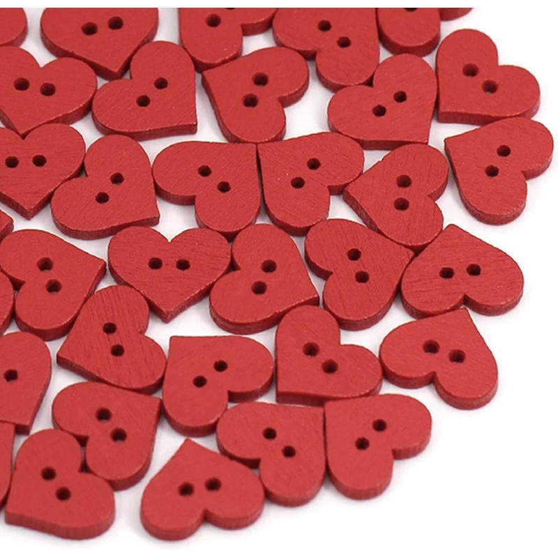 100Pcs 2 Holes Red Heart Button Red Love Heart Wooden Button Clothes DIY Sewing Accessory Decor Nice and Fashion Sewing Buttons