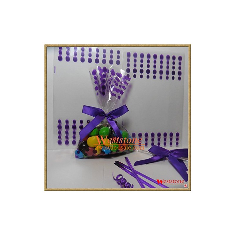 100pcs 4"x6" Polka Dot Purple Gift Bag + Twist Ties for Wedding Birthday Party