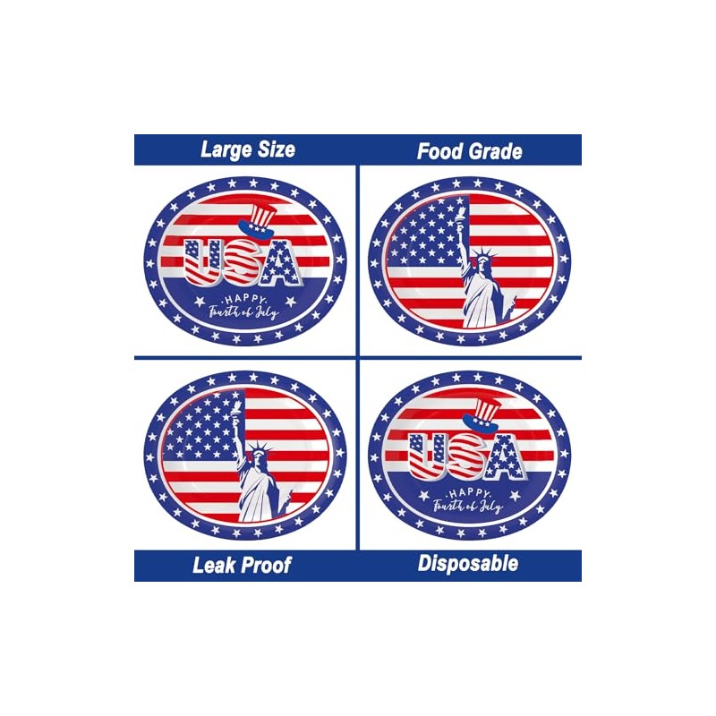 Festive Independence Day Design:Adorned with bold red, white, and blue hues, these oval plates showcase classic American motifs like stars and stripes. Perfect for Independence Day barbecues, parades, or backyard parties, they instantly transform any gathering into a patriotic celebration