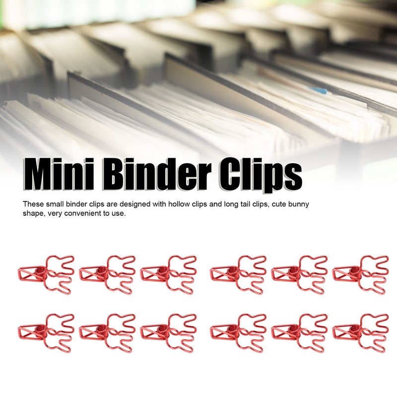 1、Unique Design: These small binder clips are designed with hollow clips and long tail clips, cute bunny shape, very convenient to use. 2、Strong Clamping Force: These small binder clips have a strong clamping force that holds the paper securely, yet are easy to handle. 3、Multipurpose: These small binder clips are perfect for your documents, certificates, tickets, clothes and other items. 4、Sturdy Metal Material: These small binder clips are made of sturdy and durable metal material, ensuring a long service life. 5、Ideal Gift: This pack includes 100 small binder clips, making it an ideal gift for kids, friends and family.