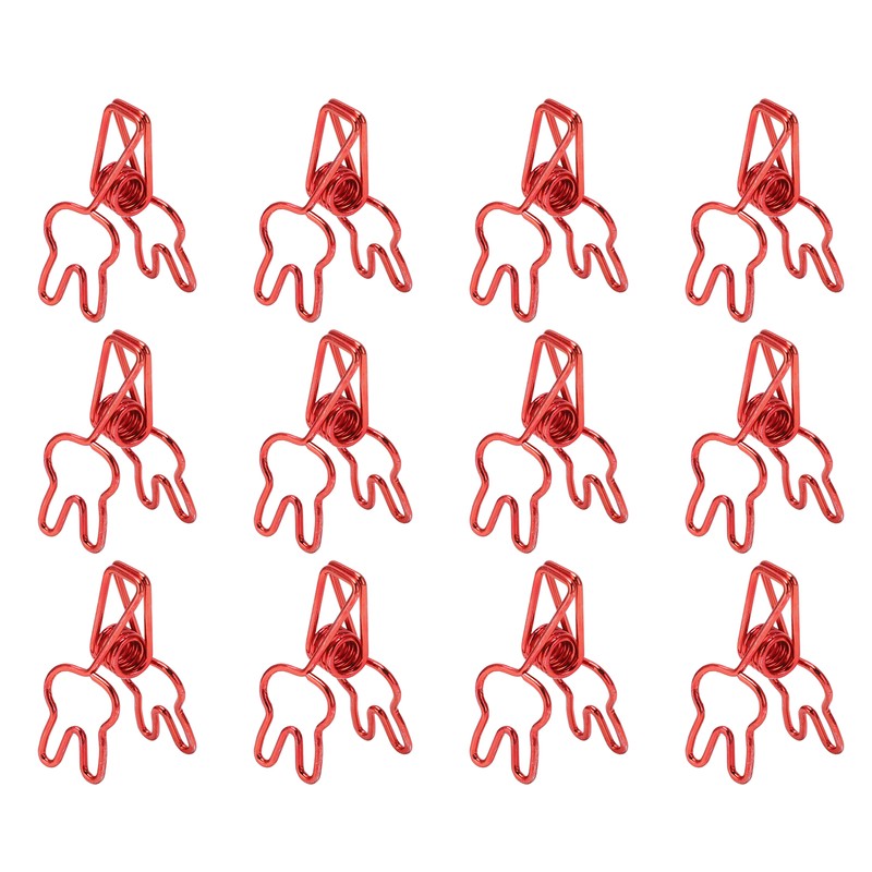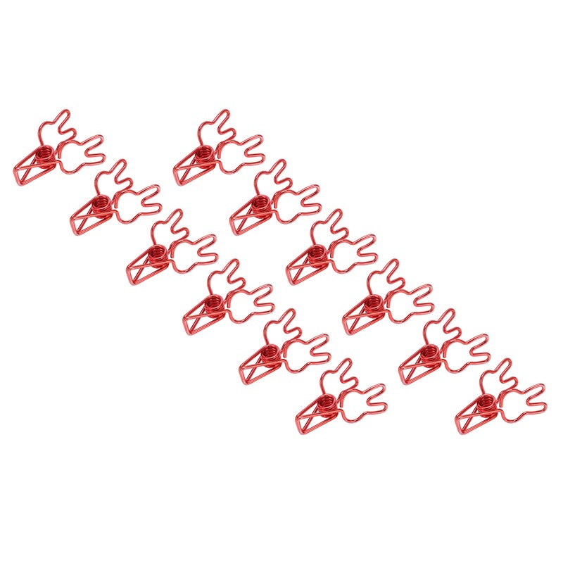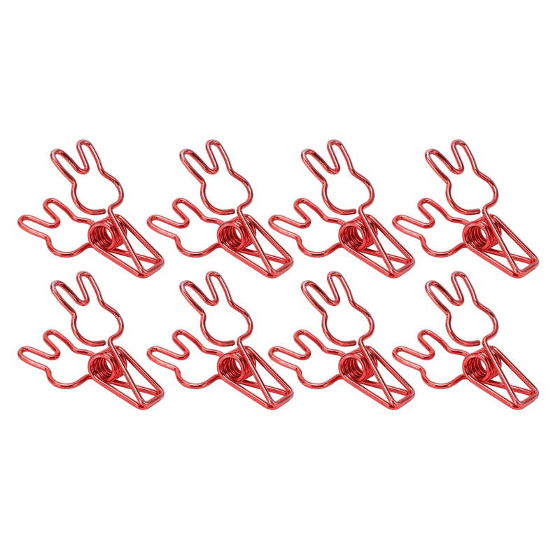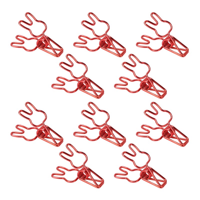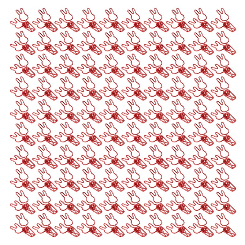 100pcs Binder Clips Cute Rabbit Shape Strong Clamping Force Metal Hollow Mini Binder Clips Paper Clamps for Office Document Red