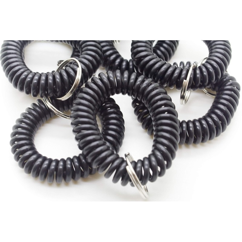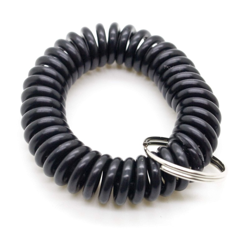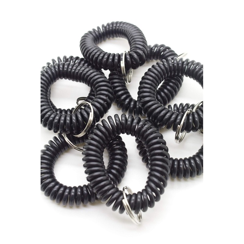 100PCS Black Color Soft Spring Spiral Coil Elastic Wrist Band Key Ring Chain