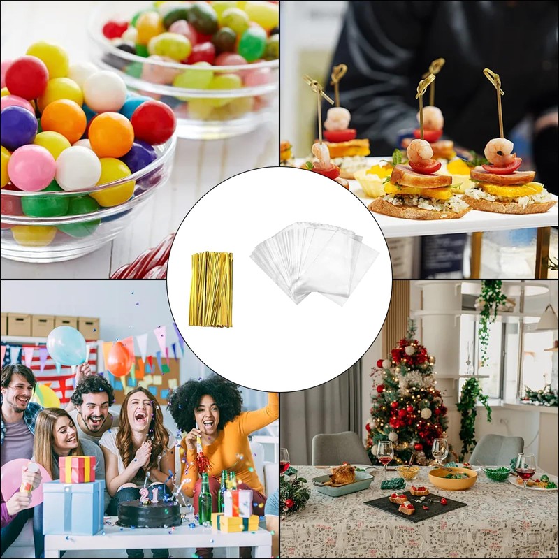 - Enough quantity - The package includes 100 pieces of clear bags, also equipped with 100 gold twist ties, clear than PP plastic bags,can protect food well. The quantity is enough for your daily use