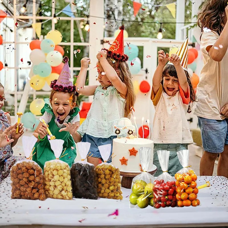 100Pcs Cellophane Bags, 10 x 15 cm Clear Bags with Twist Ties for Candy, Soap, Cookie, Mugs, Clear Plastic Gift, Flat Bottom Party