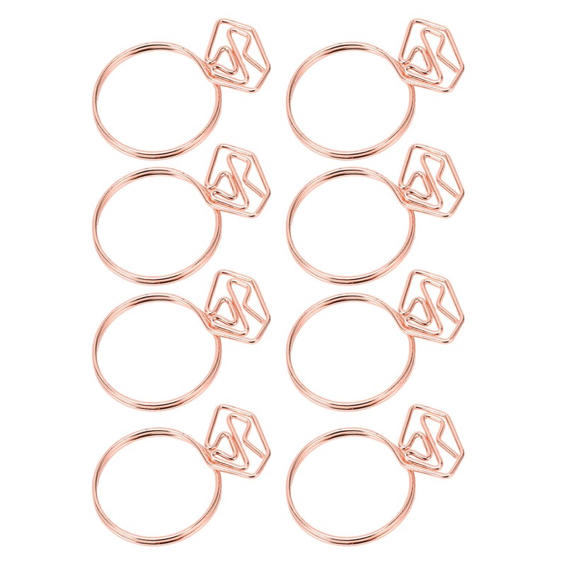1、Ring Shaped Style: These fancy paperclips feature cute ring shaped design, which can be worn on your finger, lovable and eye catching. 2、Electroplated Metal: These cute paper clips adopt premium metal material with electroplating process, the finish is bright and resistant to rust. 3、Strong Clamping: These small paper clips provide strong clamping force, firmly attached to the paper and do not slide backwards. 4、100Pcs: You will receive 100 pieces of cool paper clips in total, bringing a lot of fun to your life, cute and practical. 5、Multi Prupose: These cute planner clips can help organize your documents and drawing paper for office, home and daily use.