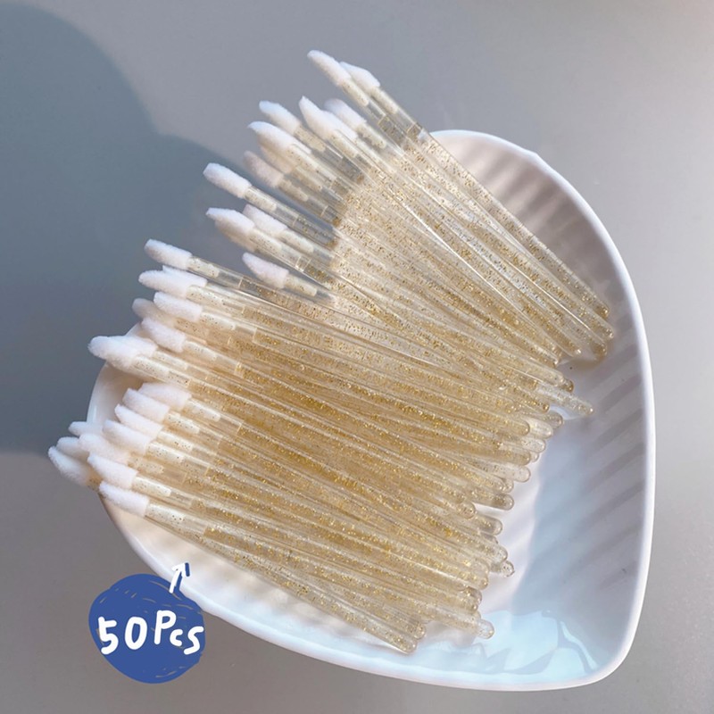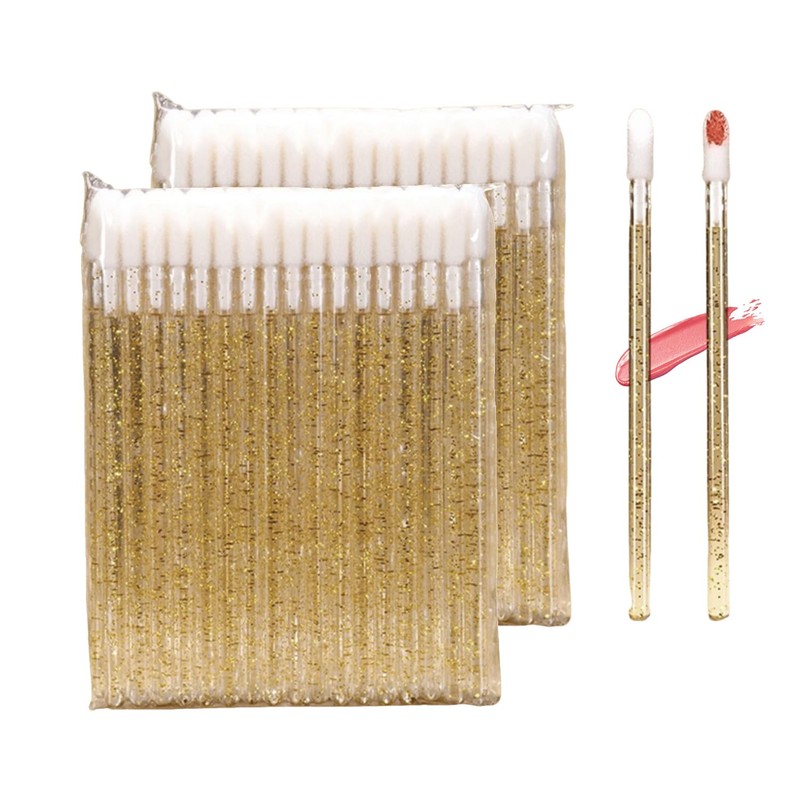 100PCS Disposable Crystal Lip Brushes - Premium Gold Lip Gloss Applicator Wands with Soft Cotton Tips, Portable Makeup Tools for Lipstick/Gloss Application