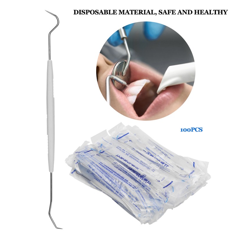 100pcs Disposable Dental Explorers Temporary Double Ends Probe Hook Pick Dental Tool