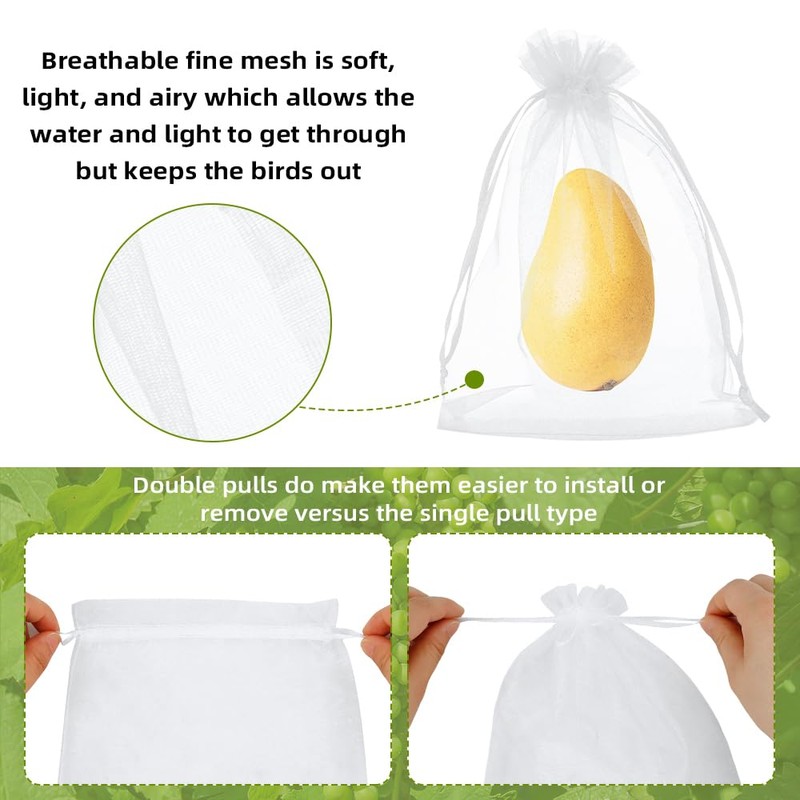 - Value Pack: You will receive 100 pcs 5x7 inch fruit protection bags that can fully cover various fruits, vegetables, plants, such as strawberries, cherries, raspberries, cherry tomatoes, etc. The reusable organza bag has sufficient quantity and suitable size to meet your different usage needs, and can be used in all growing seasons