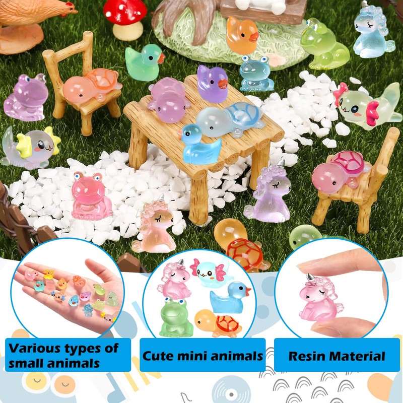 - Luminous Design:Mini resin duck,turtles,unicorn,frog,axolotl made of quality resin material, lightweight easy to carry, exquisite details and cute appearance, waterproof and sturdy. Tiny resin have a unique luminous effect, they can absorb sunlight or light, the stronger the UV, the brighter they glow in the dark, and will bring you different experiences during the day and night