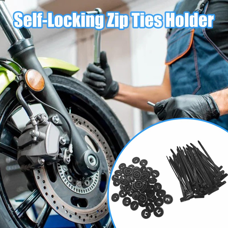 100Pcs Nylon Universal Cable Tie Buckle, Heavy Duty Self-Locking Zip Ties Holder, Multipurpose Plastic Cable Ties Tool for Car Daily Auto Fixing