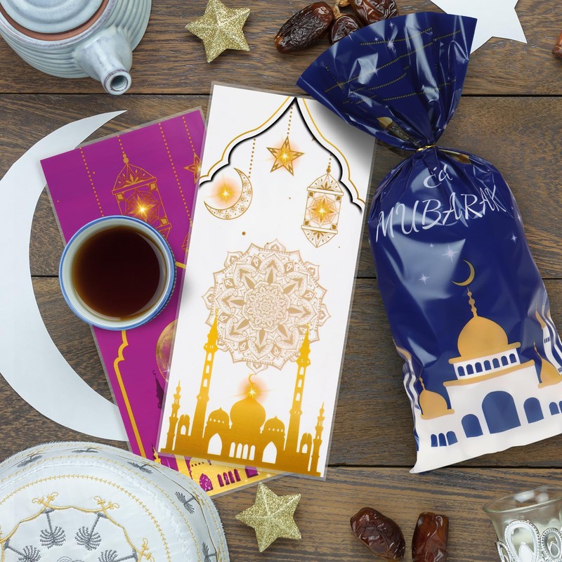 - Design: Eid mubarak goodie bags are made of high quality food OPP plastic material,odorless,safe and not easy to break or fade,great choice for packing all kinds of food and small gifts,which will add more elegance and festive atmosphere to your holiday.