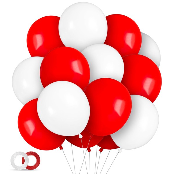 - What You Will Get- Includes 100 pcs 12 inch red and white balloons with 2 rolls of balloon ribbon, 20 meters (65 feet) total. These balloons weigh 2.8 grams each, Enough quantity can meet your festival or party decoration needs.