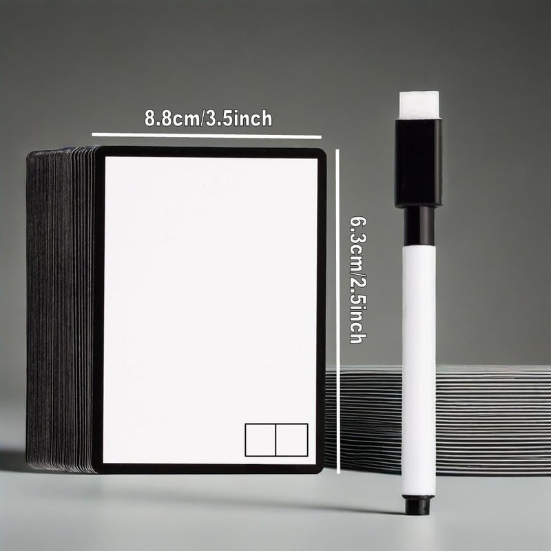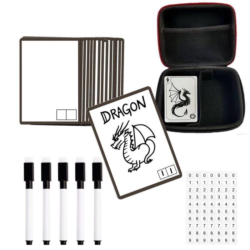 - 【Package Include】: Total 100 pcs dry erase cards for mtg tokens with 8pcs erasable markers & 1pack random carrying case & random stickers . The card is 3.5inch long and 2.5inch wide, same size as mtg cards.