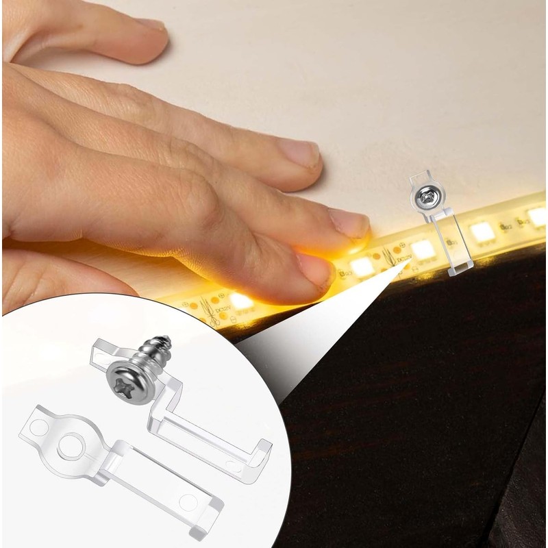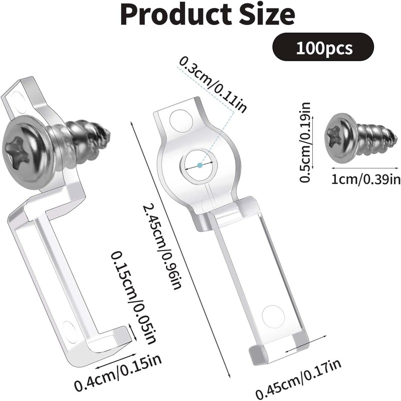 100Pcs Silver LED Strip Light Clips Light Fixture Mounting Bracket Clips One Side LED, Outside Rope Light Hangers for 10 mm Wide Non Waterproof LED Strip Lights,Wall Lights,Lighting Ceiling Fans