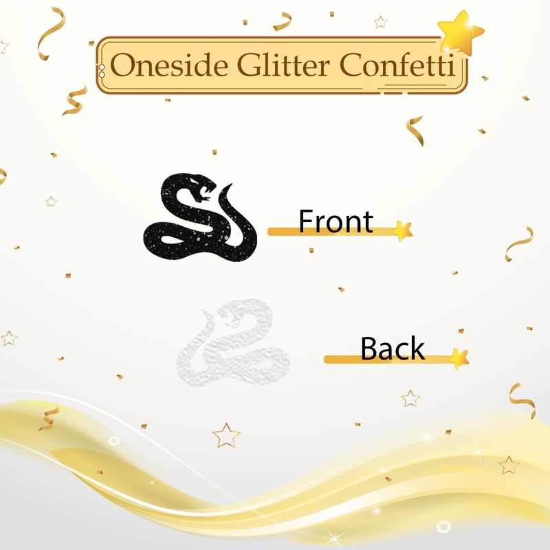 - 🐍【One Side Glitter Snake Cut Outs 】These table confetti made of high quality glitter paper with glitter surface, without peculiar smell, safe and reliable, not easy to fade, which can be applied repeatedly.