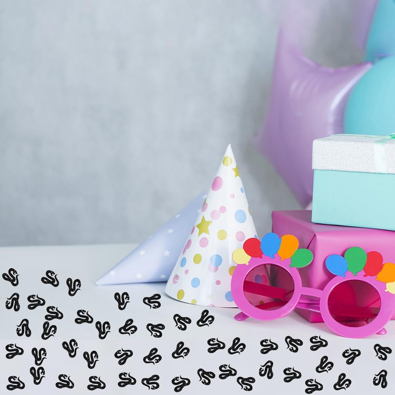 100pcs Snake Confetti, Black Glitter Snake Table Confetti for Baby Shower, Reptile Animal Paper Scatters, Reptile Pet Themed Birthday/1st Birthday Party Table Decoration