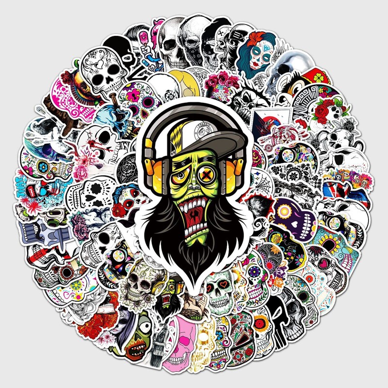 100pcs Sugar Skull Stickers Vinyl Horror Mexican Day of Dead Stickers for Water Bottle Laptop Skateboard Luggage Helmet Guitar Bike,Waterproof Dia de Los Muertos Decals Stickers for Kids Teens