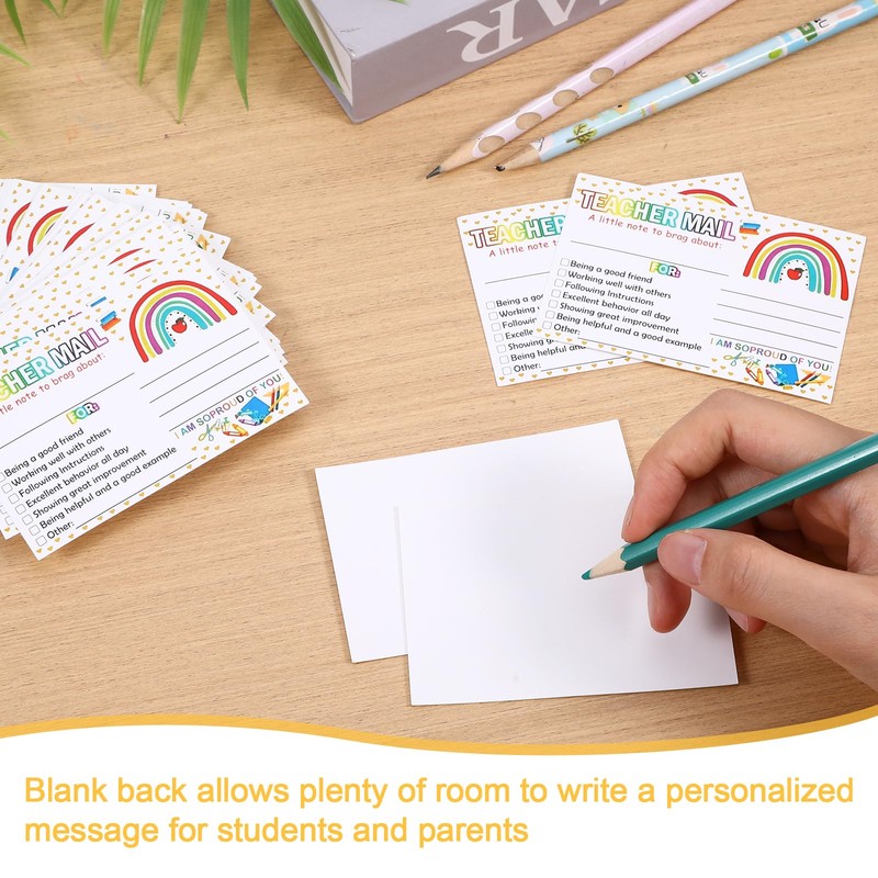 - Must-have for teachers - Rainbow teacher motivational supplies are perfect for preschool, kindergarten, elementary school, home school, nursery, etc. Teacher mail notes to parents can help students develop good behavior and build their self-confidence. This teacher mail notes is an easy way to send a positive message to parents and makes a great teacher supply in the classroom