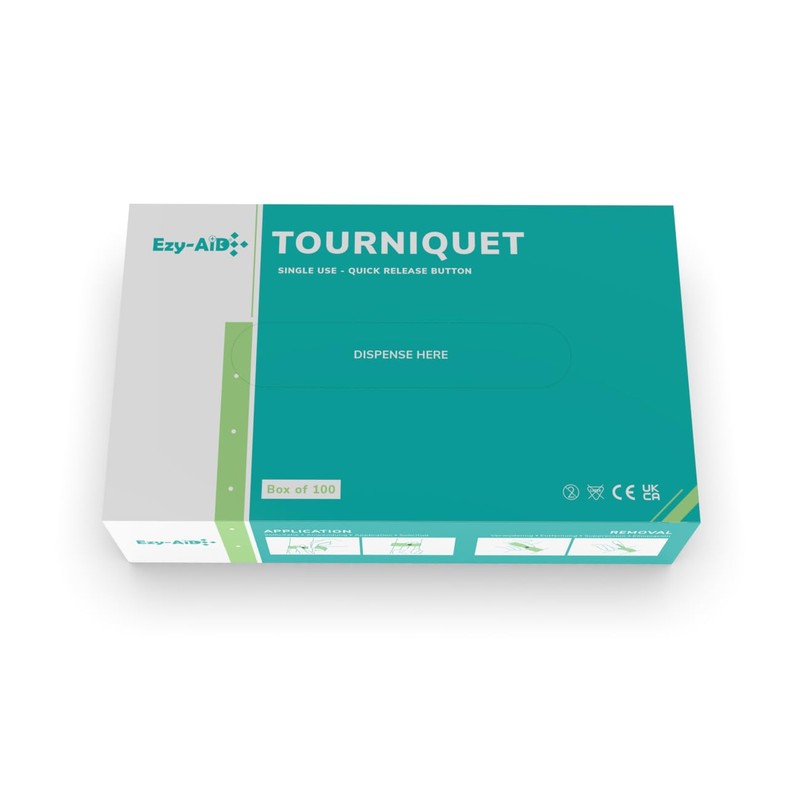 100pk Ezy-Aid Disposable Tourniquet with Button, quick release for safe one hand removal, smooth material, non-toxic, stretchable and strong