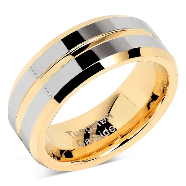 100S JEWELRY Tungsten Rings for Mens Wedding Bands Gold Silver Two Tone Grooved Center Line Size 6-16 (tungsten, 14.5)