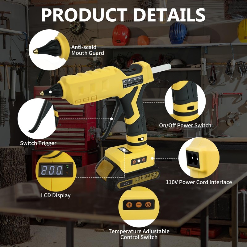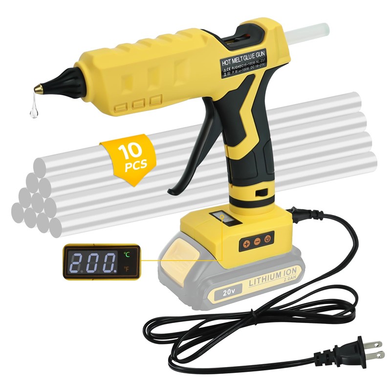 - 【COMPATIBLE BATTERY MODELS: 】RexLeLXB cordless hot melt glue gun powered by De-Walt 18V/20V 60V battery model: DCB203 DCB204 DCB206 DCB200 DCB207 DCB201 DCB200 DCB180 DCB182 DCB181 lithium-ion battery glue gun; (Tool Only)
