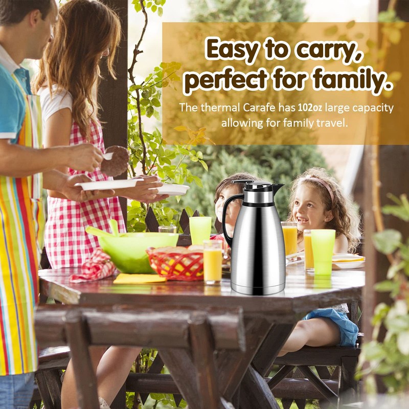 102 Oz Thermal Coffee Carafe, 3 Liter Stainless Steel Thermos Carafe, Double Wall Insulated Coffee Pot, Fully Sealed Coffee Thermos Dispenser Keep Hot 12 Hours,Vacuum Thermal Pot for Coffee