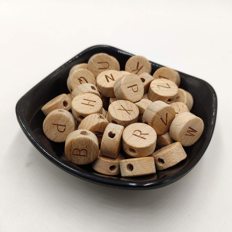 - Organic Wood Alphabet Letter Beads,DIY Accessories beads,Color:Natural wood