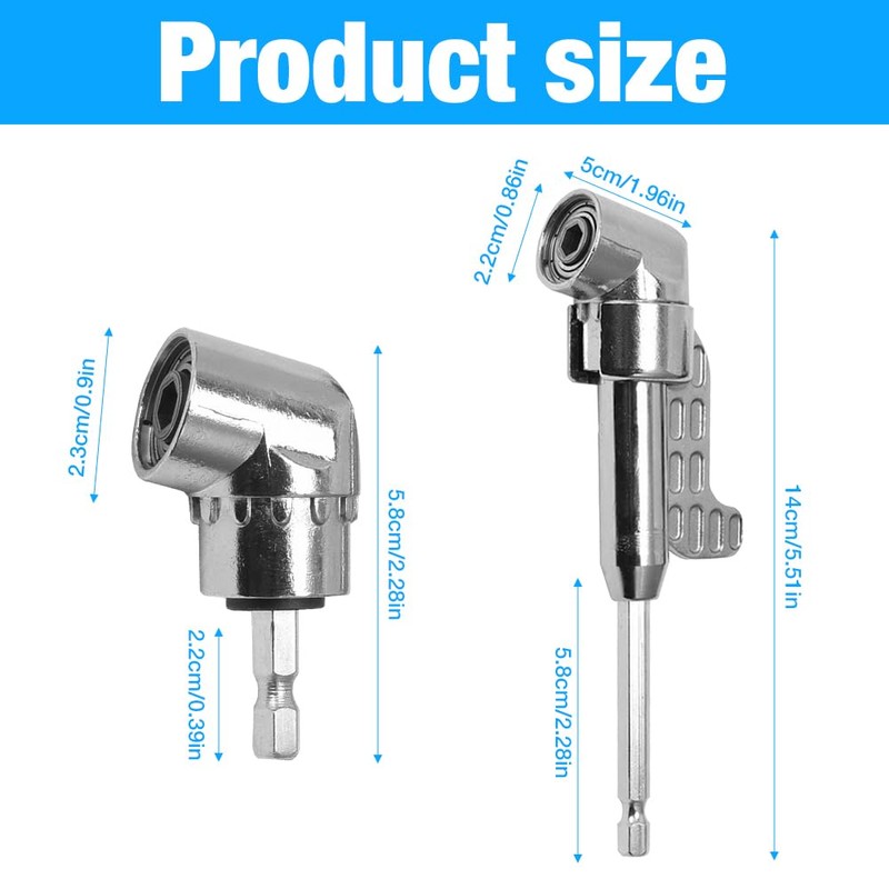- High-Quality Materials Are Durable And Reliable: Right Angle Drill Attachment Kit is made of chrome vanadium alloy steel and zinc alloy, which is hard, rust-proof and corrosion-resistant to ensure the durability of the tool. Angled Screwdriver Adapter die-cast structure enhances stability and extends service life to meet the needs of professionals.