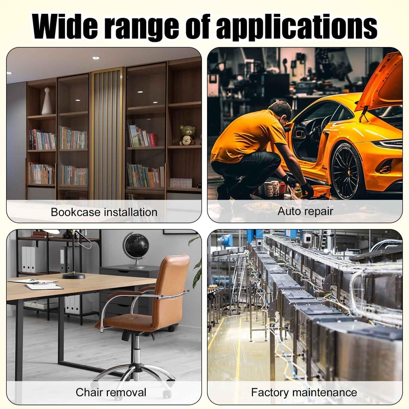 • Wide Application: The right angle drill attachment kit is a very practical tool to help you easily handle diverse projects in small spaces. You can use it for factory maintenance, bookcase installation, auto repair, chair removal and so on.