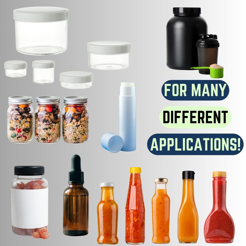 - Examples of products this works best with: Cosmetic jars, plastic jars, spice jars, and various other types of containers. As there are many different types and sizes of containers, it is best to measure your specific diameter to ensure you purchase the correct size!