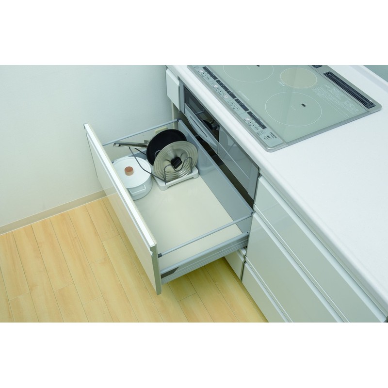 Drawer system for kitchen organization; A dedicated pot pan stand for storing large pots and pans upright in the drawer. The TOTONO series allows you to neatly organize and organize your kitchen drawers. Pull out system for kitchen use. You can mix and match the size and use of your drawer, and it can create a modular storage solution for a neat look. Easy to remove the frying pan, and effective use of dead space! Handle holder for pan top Compact 8.3 inches (21 cm) wide to store frying pans in a space saving space. Size (approximate): 8.3 x 10.6 x 7.3 inches (21 x 27 x 18.5 cm); Compatible with pot/pan sizes from 7.1 - 11.0 inches (18 - Includes 4 dividers. Made in China.