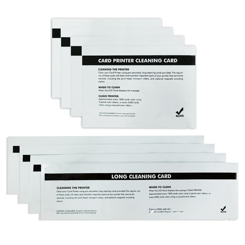 - Meet your cleaning needs: This product includes 4 print engine cleaning cards and 4 feeder cleaning cards to meet your daily cleaning needs for ZXP1 ZXP3 card printers. When you experience a decline in print quality, use the cleaning cards to help restore the printing performance and reliability of your card printer.