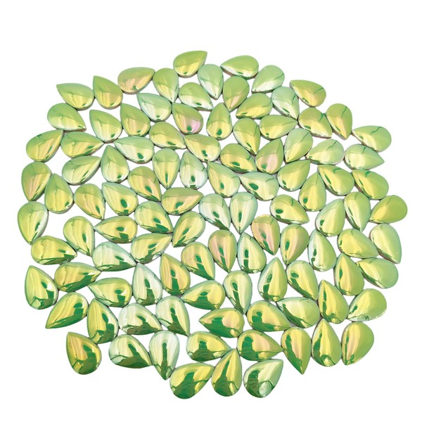 105PCS 1.1"x 0.7" Ceramic Raindrop DIY Mosaic Tiles, 1.1LB Mosaic Tile Pieces for Handmade Mosaic Making Kits Art Projects Home and Outdoor Decoration (Iridescent Green)