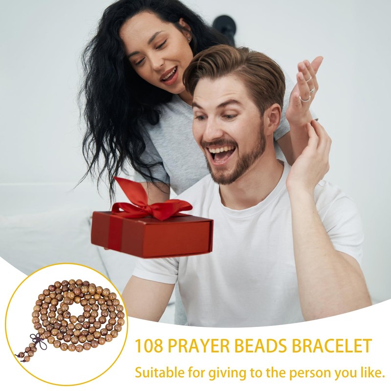 - [Protection and Harmony]: Handmade with 108 natural wooden beads of 8 mm, this meditation bracelet offers a length of 86 cm, adjustable to necklace or bracelet, decorated with a Chinese knot for stability.
