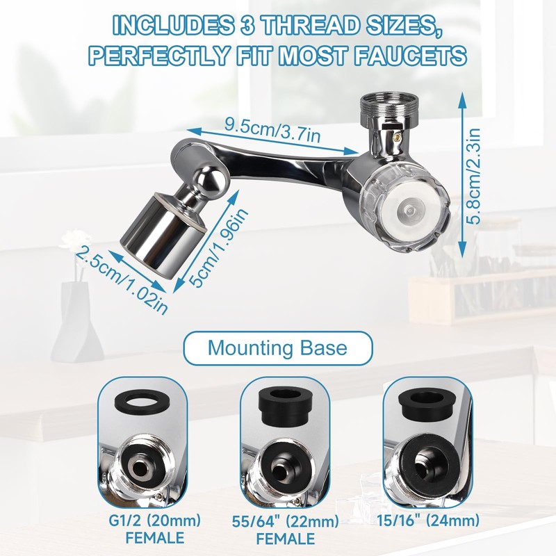 - 1080° SWIVEL FAUCET: The faucet aerator has 3 swivel fittings, each of which can be rotated 360 degrees. The faucet extender is perfect for families with small children, allowing them easy access to pure water streams, independence and proper hygiene habits. It's also great for pet owners to bathe their beloved pets