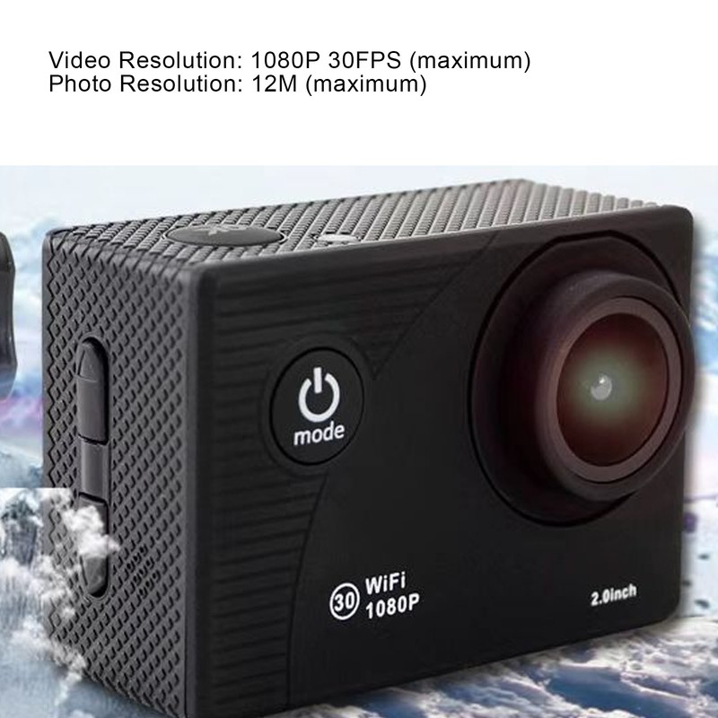 1080P 30FPS WiFi Action Camera 2.0 Inch IPS HD Wide Angle IP68 Waterproof Underwater Camera with Microphone Remote Control for Diving Snorkeling