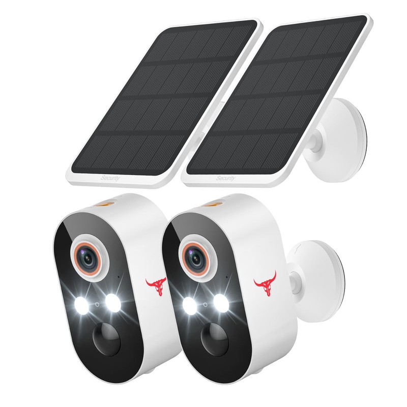 1080p Wireless Security Camera with Solar Panel, 2.4GHz Wi-Fi, Color Night Vision, Home Security System, PIR Motion Detection, 2-Way Talk, Outdoor Surveillance Bullet Cam (2 Pack)