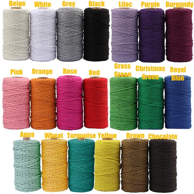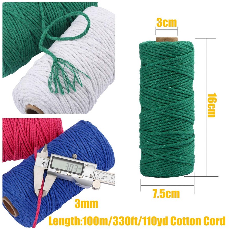 - 3mm in diameter and 100meters/328ft long and there are 20 colors available.it weights about 345g.Small Macrame Cord Size (1-2mm):micro macrame cord size is perfect for weaving through small beads and buttons.Our Medium macrame Cord Size (3-5mm) most-likely be your standard macrame cord and there are great to make plant hangers, wall-hanging, mandalas and 99.9% of your macrame projects.
