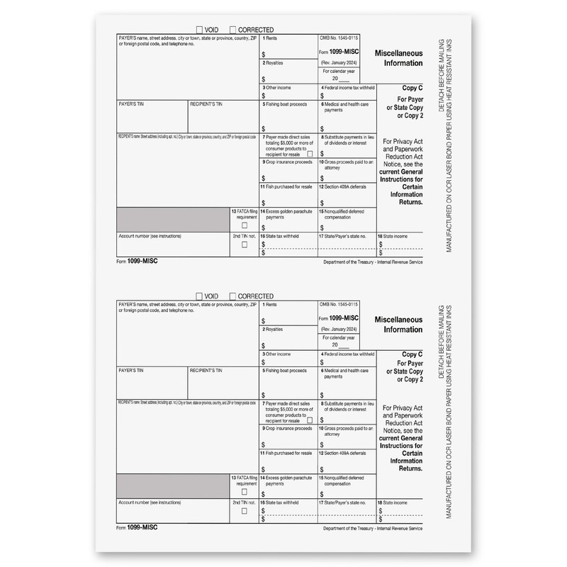 - A GREAT COMPATIBILITY SET - This 2024 1099 MISC form kit is compatible with both Inkjet and Laser printers as well as Tax software and it is an ALL-INCLUSIVE kit of Federal Copy A, Copy B, Copy C and 1096 MISC, everything you need for your peace of mind in reporting payments.