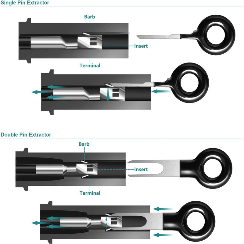 - 【Wide Applications】 This terminal ejector kit tool is suitable for most connector terminals, such as automobiles, motorcycles and other electronic vehicles.