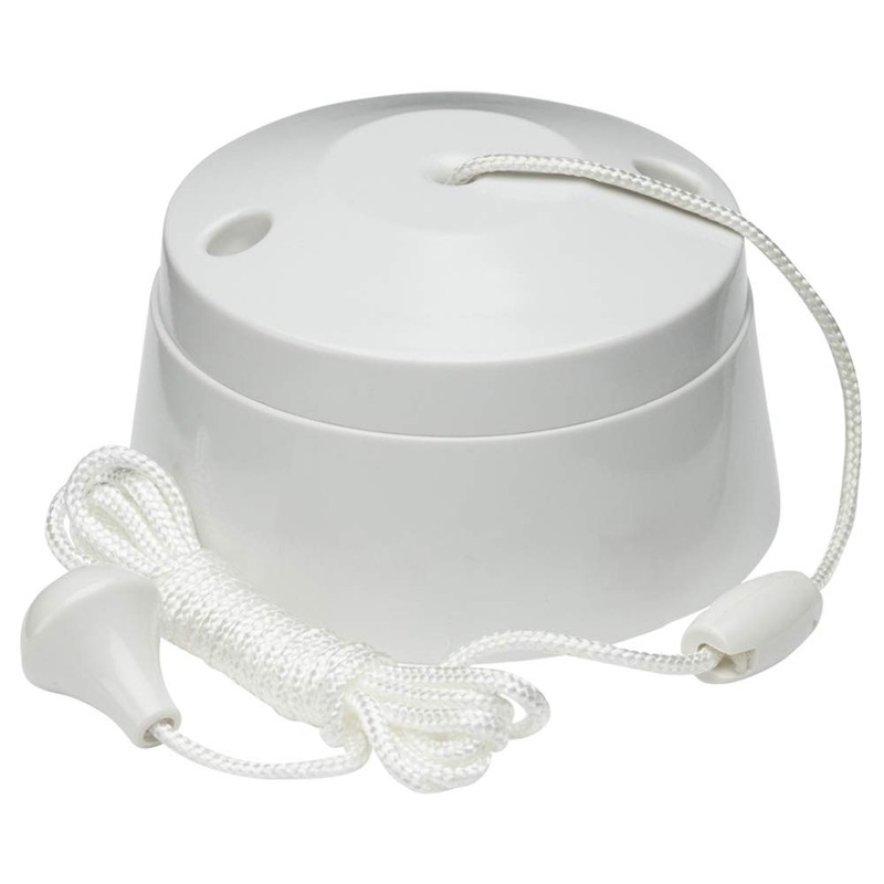 10A 1 Way Pull Cord Light Fan Switch Toilet Kitchen Bathroom Basement 1.7M Long String Pullcord White Round Ceiling Mounted