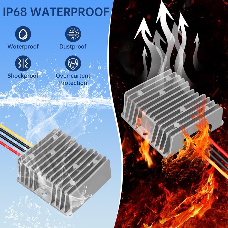 - Compact aluminum housing, silicone sealing design, more durable, high conversion efficiency, good stability, with excellent 100% waterproof, dustproof, explosion-proof, shockproof performance, can be adapted to a variety of harsh environments Intelligent protection, short-circuit protection, over-voltage, overload, overheating protection, easy to install, safer to use!