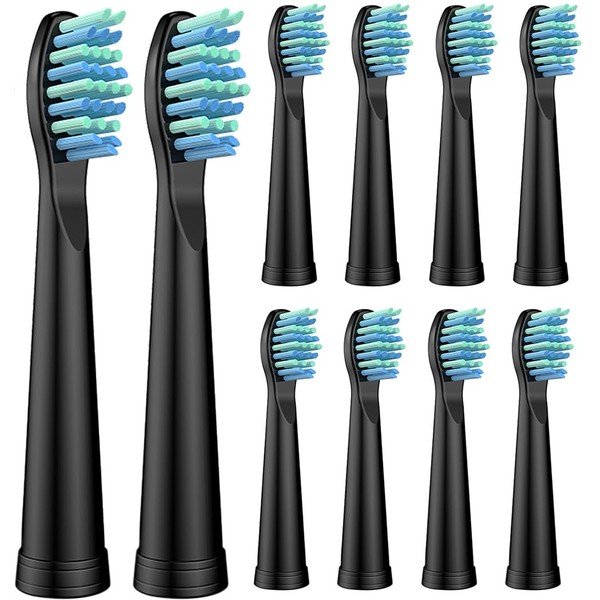 10er Ersatzbürsten Kompatibel mit Fairywill Zahnbürste, Aufsteckbürsten passend für FW-507/508/551/515/2011/917/959/D1/D3/D7/D8/,SG-E9/507/958 - Schwarz Zahnbürste Bürstenkopfe