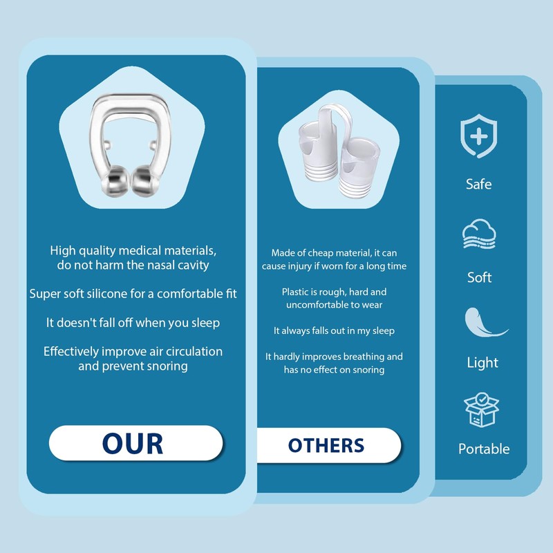- Designvorteil: Das einzigartige stromlinienförmige Design passt sich der Kontur der Nase an und macht es stabil und verdeckt zu tragen, ohne die Schlafhaltung zu beeinträchtigen oder Beschwerden zu verursachen. Außerdem wird es mit einer tragbaren Aufbewahrungsbox geliefert, um Sauberkeit und Hygiene zu gewährleisten.