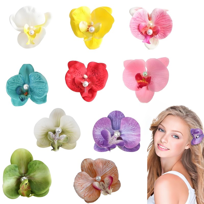 Entdecken Sie die exotische Schönheit der Haarspangen mit Hawaiianischen Blumen, Böhmischen Haarnadeln mit Schmetterlingsorchidee und Perlen! Dieses Set von 10 Stück ist nicht nur ein Accessoire, sondern ein wahrer Schmuck für Ihr Haar.
